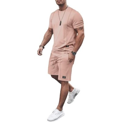 Mens 2 Piece Outfits Casual T Shirts Short Sets Summer Tracksuits and Athletic Matching Set with Pockets
