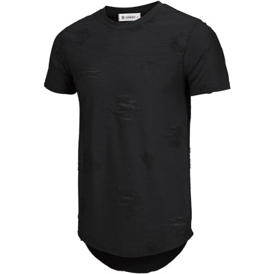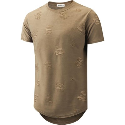 Mens Hipster Hip Hop Ripped Round Hemline Hole T Shirt