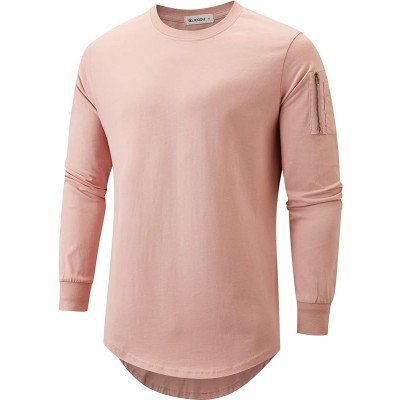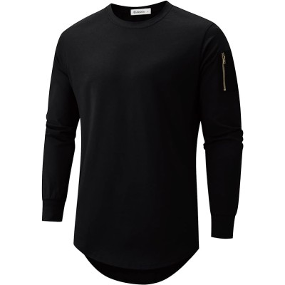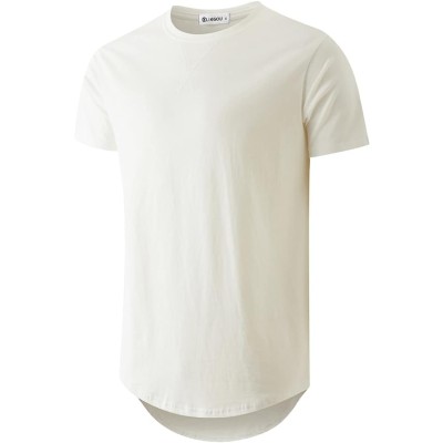 Mens 100 Cotton Hipster Hip Hop Longline Crewneck T-Shirt Pre - Shrunk S-4XL