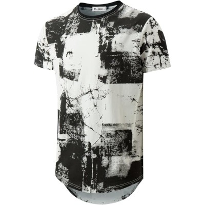 Mens Hipster Hip Hop Ripped Round Hemline Pattern Print T Shirt