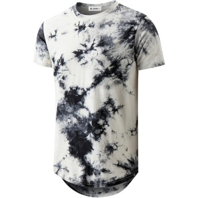 Mens Hip Hop Tie-Dyed Hipster Curve Hem T Shirt