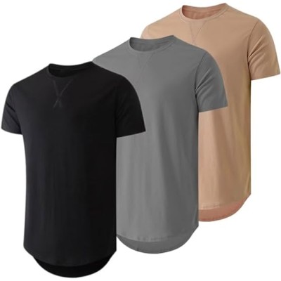 Mens 3 Pack Crewneck T-Shirt Cotton Hipster Hip Hop Longline Classic Top