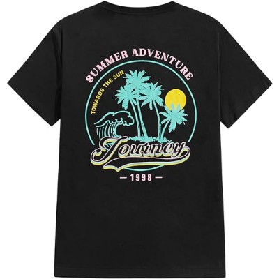 Men's Graphic Tees Short Sleeve T Shirts Letter Print Summer Casual Tee Top Black Letter Tropical Print M