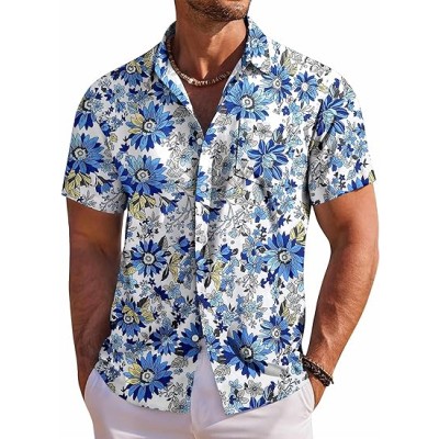 Men's Hawaiian Shirt Short Sleeve Floral Button Down Shirts Tropical Holiday Beach Shirts