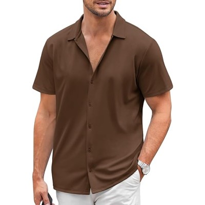 Men's Casual Button Down Shirts Wrinkle Free Short Sleeve Dress Shirt Regular Fit Untucked Summer Shirt