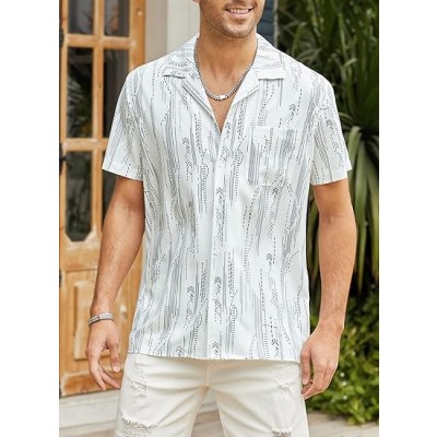 Men's Casual Button Down Hawaiian Shirt Short Sleeves Floral Beach Shirts with Pockets