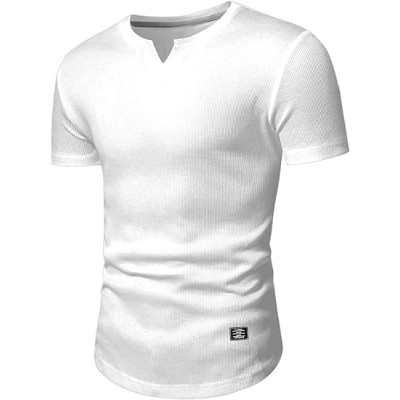 Men's Muscle Slim Cotton T Shirt V-Neck Henley Shirt Gym Workout Athletic Tee Shirts