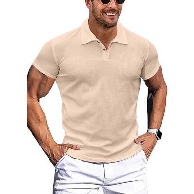 Mens Muscle Polo Shirt V Neck Short Sleeve Golf T-Shirts Tees Solid Knit Quarter Button Casual Tees