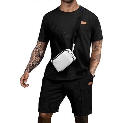 Mens 2 Piece Outfits Casual T Shirts Short Sets Summer Tracksuits and Athletic Matching Set with Pockets