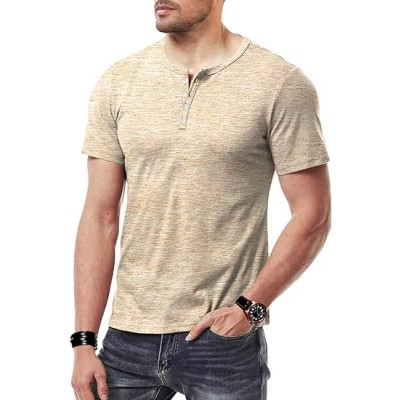 Mens Muscle Henley Shirts Short Sleeve Summer Casual Front Placket Cotton T-Shirts